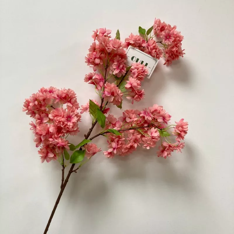 این شاخه شکوفه گیلاس مصنوعی دارای چندین چنگال گل و چهار مجموعه برگ سبز است و یک لایه بندی هماهنگ و غنی ایجاد می کند.