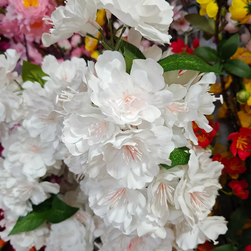 گلهای مصنوعی Ouli White Cherry Blossom از شعله باز هستند و آنها را برای کاربردهای مقاوم در برابر آتش ایده آل می کند.